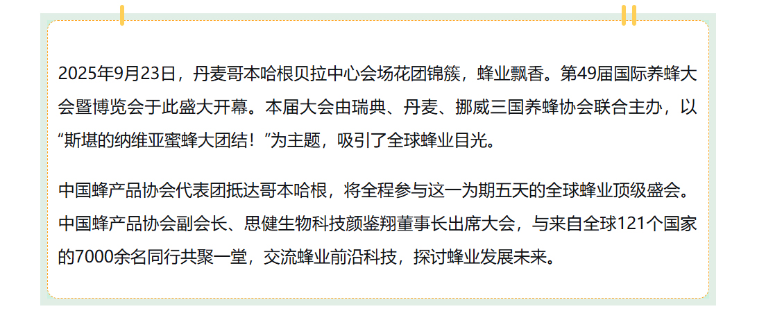 中國蜂協(xié)副會(huì )長(cháng)、思健蜂業(yè)顏鑒翔董事長(cháng)出席第49屆國際養蜂大會(huì )